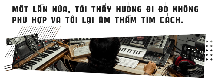 Sau khi đạt được sound trống mà anh Lủng “phê duyệt”, cùng với phần bass line funky của anh Tuấn, và phần guitar thùng của mình, tôi cùng với anh Tùng bắt đầu “săn lùng” sound guitar. Nhờ quen biết khá nhiều tay chơi guitar, tôi đã tập hợp được kha khá những cây đàn độc và lạ. Cùng với những cây đàn mà tôi và anh Tùng có sẵn, chúng tôi có khoảng 20 cây đàn đủ các cấu hình khác nhau. Mỗi cây đàn, khi kết hợp với một tube amp lại cho ra màu sắc khác nhau, gợi mở những ý tưởng khác nhau để hoàn thiện nốt những track guitar của anh Tùng. Suốt 4 tháng, tôi và anh Tùng cứ thế hẹn nhau tại phòng thu, thử nghiệm cây đàn này với amply kia, rồi chắt lọc lại, chỉ đưa những âm thanh, những câu guitar đặc sắc nhất vào bản phối, còn lại bỏ hết.